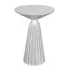 This conical-shaped side table features a White Wash ribbed base with a round top. Its sculptural form elegantly combines function and form, serving as a refined accent for contemporary and transitional interiors.