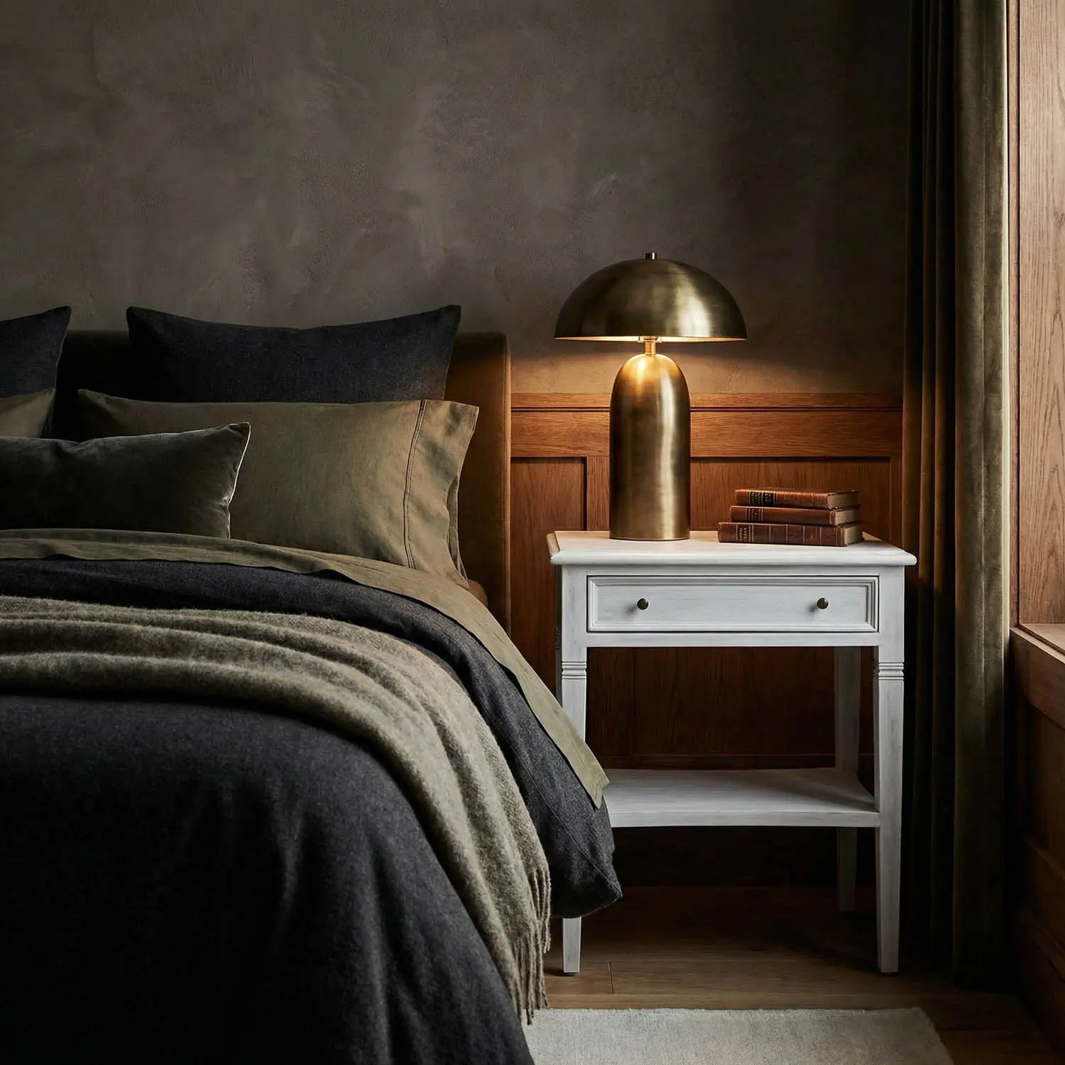 The Oxford Side table is a traditionally inspired side table made from mahogany. It features fine tapered legs, one slender drawer with brass pulls and a generous shelf. Our White-Wash finish highlights the subtle wood grain.