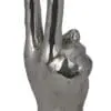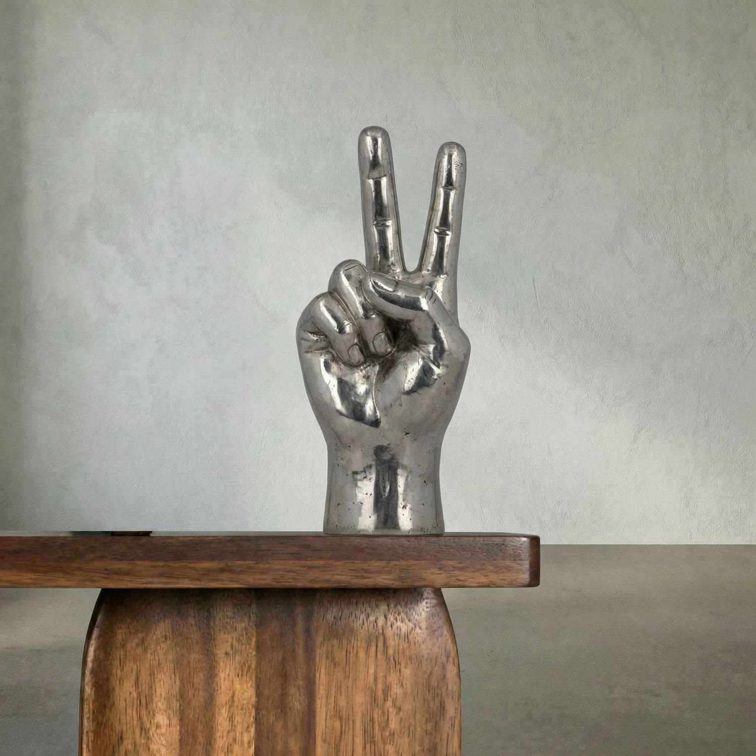 Crafted in a polished silver finish, this hand sculpture features the classic peace sign, radiating a cool and calm vibe.