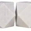 The Polyhedron Candle Holder set features four hand-carved cubes, each carved from Bianco Crown Marble, with subtle faceted angles that evoke a minimalist, geometric form.