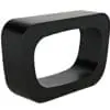 The Ponte Console features a sleek, matte black iron design with a unique, curved shape that blends circular and rectangular forms. Handcrafted details and visible welding marks give it a bold, modern character.