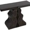The Ray Console, in a Pale finish with brown highlights, features a sculpted, wave-like base and a softly contoured top, all presented in a warm, pale tone. Compact yet striking, it adds organic texture and subtle drama to modern interiors.