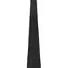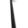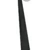 The Roy Floor Lamp features a tapered iron base that leans subtly backward, supporting a single frosted globe. Its clean angles and soft light create a striking, sculptural presence.