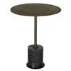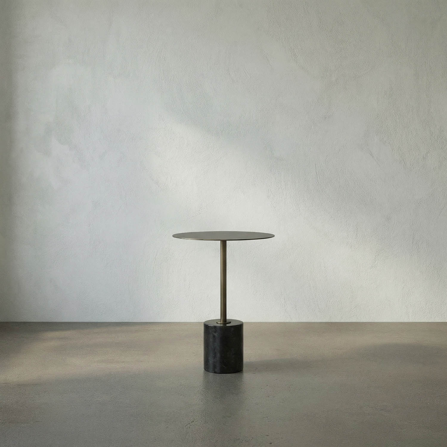 This round side table features a polished black marble base and a warm Aged Brass top, creating a sculptural yet understated accent that combines classic sophistication with contemporary minimalism.