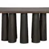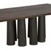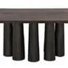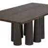 The Severity Table features a substantial rectangular walnut top over a bold, multi-column base with clean vertical lines, blending contemporary and organic influences into a striking, modern statement for dining or conference spaces.