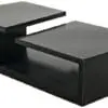 The Shift Coffee Table features a matte black iron frame with a dual-level top. Its clean lines and bold geometric form create a striking modern statement for contemporary interiors with architectural flair.