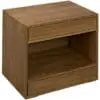 A two-drawer sleek side table featuring a gold teak finish and a clean, rectangular form, designed for modern, transitional, and mid-century modern interiors. Its minimalist lines and warm metallic-wood tones add subtle sophistication and versatility.