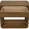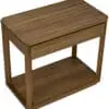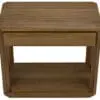 A one-drawer sleek side table featuring a gold teak finish and a clean, rectangular form, designed for modern, transitional, and mid-century modern interiors. Its minimalist lines and warm metallic-wood tones add subtle sophistication and versatility.