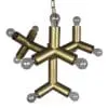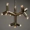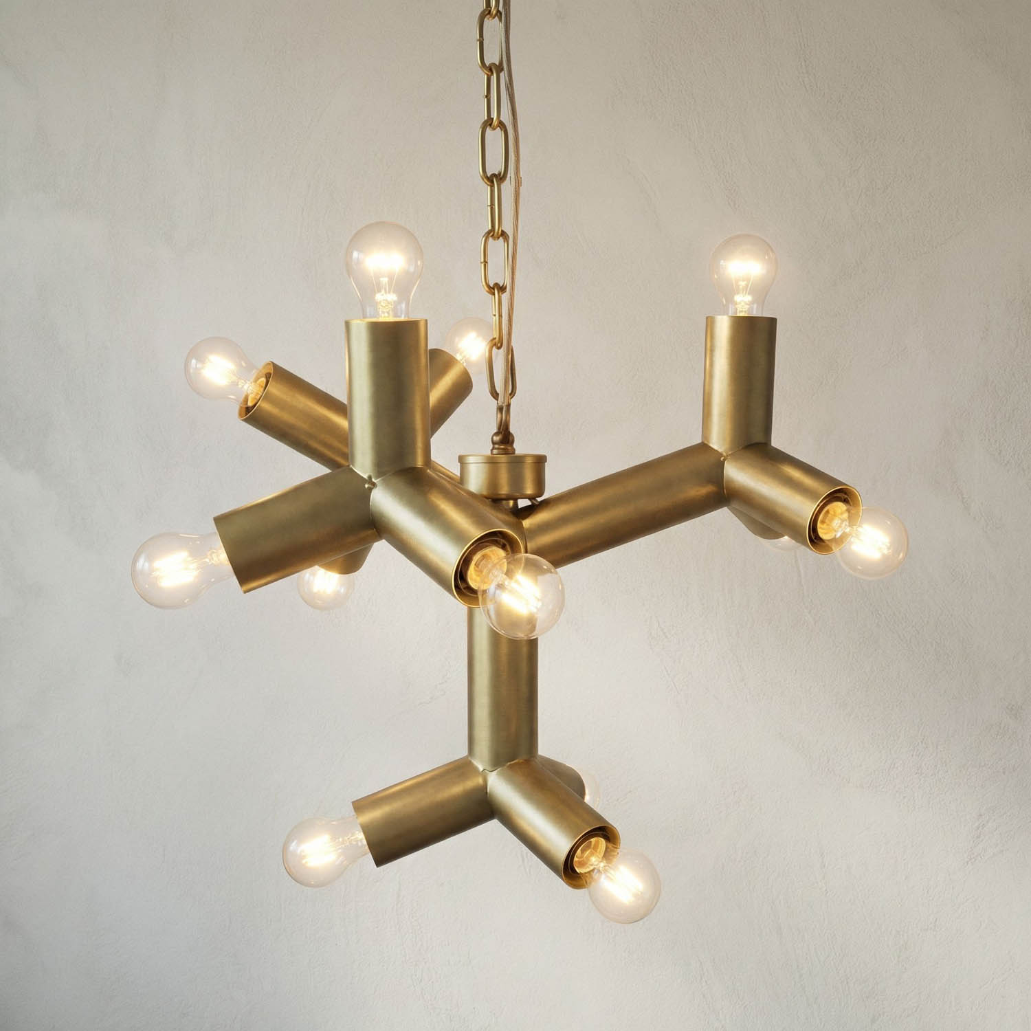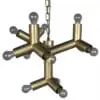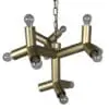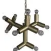 A small Antique Brass sculptural chandelier in antique brass-finished iron, featuring twelve radiating arms that form a dynamic, snowflake-inspired silhouette. Its bold geometry and warm metallic finish add to its architectural sophistication.