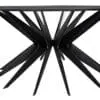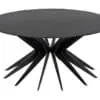 The Spider Coffee Table features a Matte Black round top over a radiating iron base, blending mid-century inspiration with industrial edge. Its spindled silhouette adds movement, making it a bold, sculptural focal point.