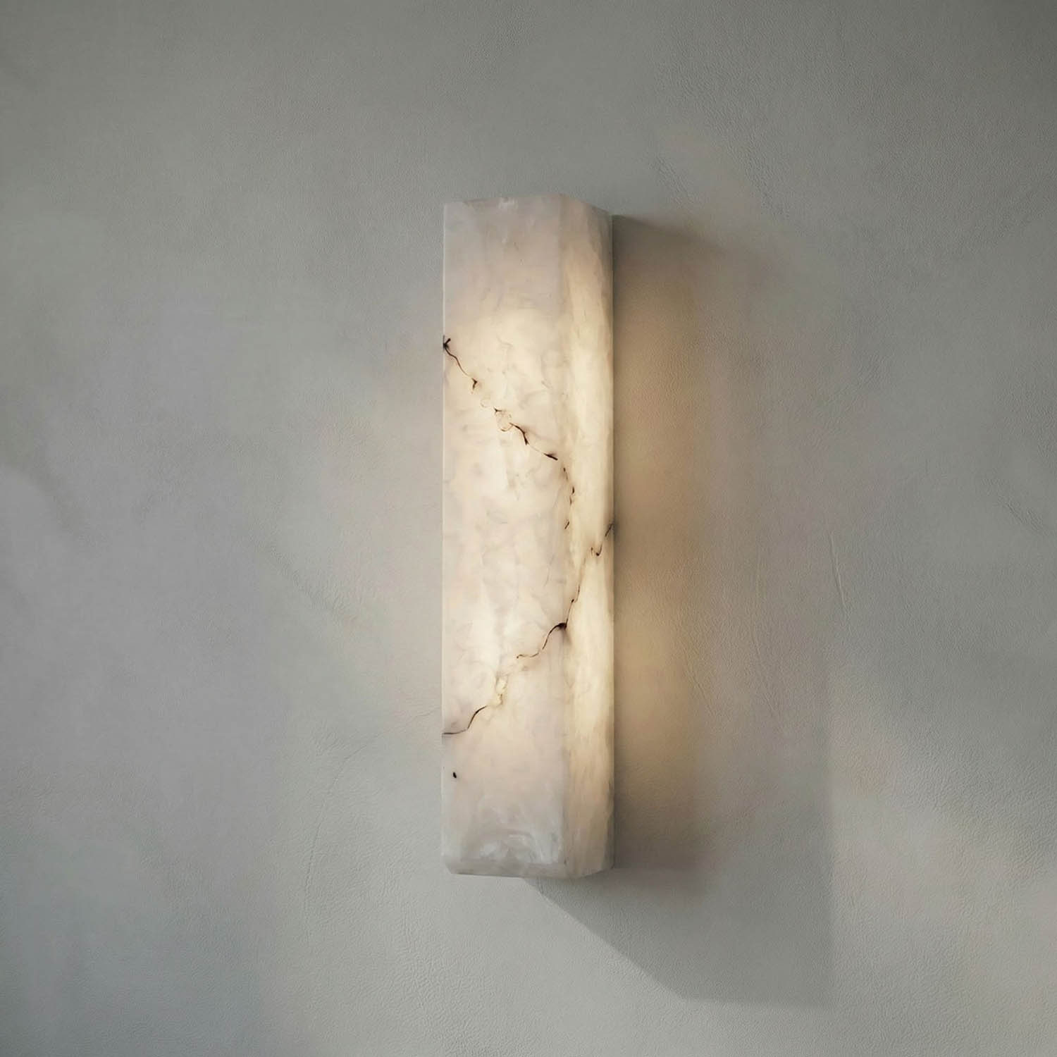 A sleek, rectangular wall sconce with squared edges emits a warm, even glow. Its smooth surface and subtle depth create soft, ambient light, emphasizing minimalist elegance and contemporary sophistication.