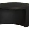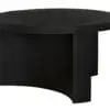 A modern industrial coffee table with a Matte Black cylindrical iron top and a turbine-shaped base. Its clean lines and solid construction create a bold, minimalist statement for contemporary living spaces.