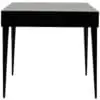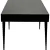 The Stiletto Desk features sleek black iron legs paired with a minimalist top. Its slim, tapered frame and side cubbies create a bold yet refined design, ideal for modern workspaces that value both form and function.