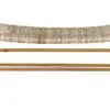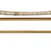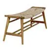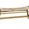 A versatile teak bench in the Scandinavian style features a woven seat in natural rush seagrass and integrated handles.