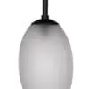 The Swan Floor Lamp has a matte black iron base and a gracefully curved tubular arched stem. It holds a frosted, egg-shaped glass shade, combining clean industrial lines with a soft, sculptural form.