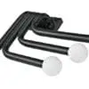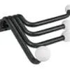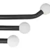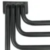 The Sweeny Sconce features four matte black metal arms with cylindrical glass shades. Its minimalist design offers a subtle elegance and versatile sconce. The fixture can be mounted in multiple orientations.