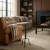 The round Tini Side Table is a small, elegant piece inspired by Victorian plant stands. It features a slender metal column and a round top with an Aged Brass finish. Its vintage charm complements both classic and modern spaces.