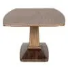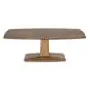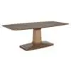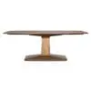 The Travis Table in Dark Walnut is a minimalist dining table with a slim, curved rectangular top and sculptural pedestal base, combining rich wood tones for a versatile centerpiece in modern and transitional interiors.
