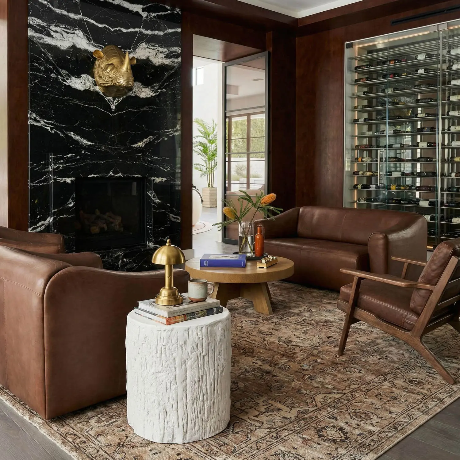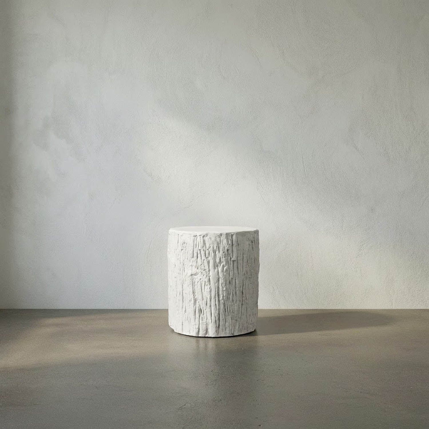 Crafted from fiber cement, a unique material that boasts a rich, natural texture, this white accent table invites sculptural exploration, exploring new frontiers in form and space while also accommodating a drink, a book, or a plate. Handcrafted and finished.