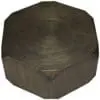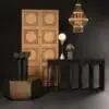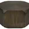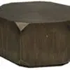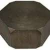 The Tytus Coffee Table showcases a six-sided form with an aged brass finish. Its clean geometry and warm metallic tone create a sculptural, modern-industrial presence.