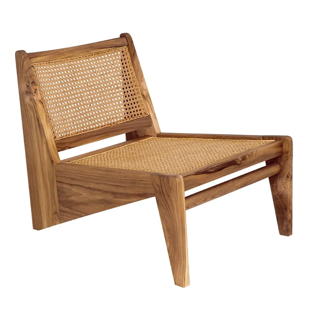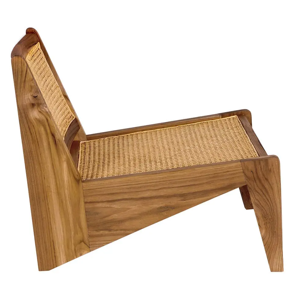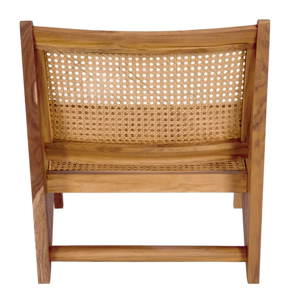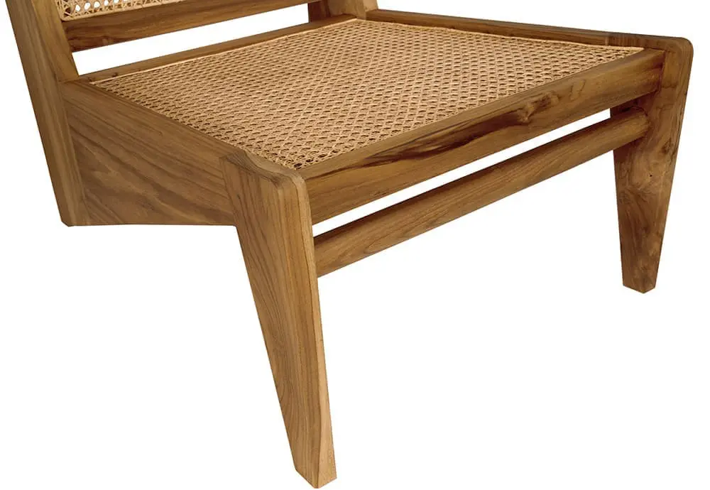The Udine Chair features a teak frame and a handwoven rattan seat. Its clean lines and natural materials create a minimalist, tropical-inspired accent that is perfect for stylish and relaxed interiors.