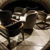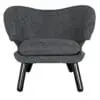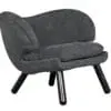 A plush armchair that features a cozy, charcoal-gray fabric with a broad, sculpted backrest and deep, cushioned seat. Its playful, rounded form and angled black legs give it a relaxed yet modern lounge look.