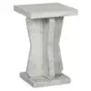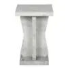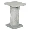 This solid Crown Bianco Marble side table features a substantial square top that rests on an angular fluted base. Its sculptural, modern minimalist design highlights the natural variations in the stone, creating a unique and elegant accent piece.