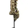 A sophisticated sculpture with the sensibility of an abstract, our detailed vertebrae is exquisitely rendered in polished brass and includes a matte black metal display stand.