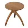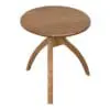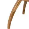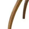 The teak Vikram Side Table features a round top with three twisting arched legs that converge at the center. Its warm tone and refined curves blend functionality with artistic design, perfect as an accent.