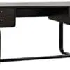 A sophisticated blend of ebony finished walnut and black iron, featuring four drawers, gently rounded legs, and sleek curves–the Voltes Desk brings organic warmth, structural balance, and a polished industrial touch to your workspace.