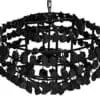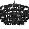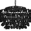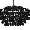 The Vulcan Chandelier features a matte black iron frame with textured black glass pieces, inspired by volcanic rock.