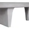 The Ward Coffee Table features a sleek, White-Wash finished mahogany top supported by sculptural, rudder-inspired legs, blending nautical elegance with modern minimalism for a bold, sophisticated centerpiece.