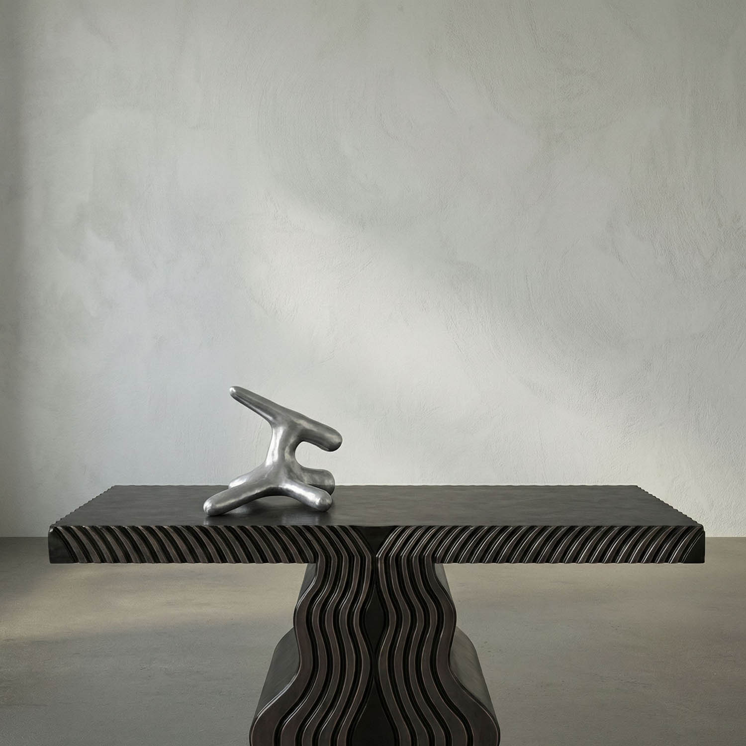Aluminum is hand cast into a freeform tabletop sculpture that has a unusual organic and bone-like shape. Style this unique sculpture on top of a stack of books. Brushed finish.