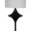 The Wilder Lamp blends mid-century and minimalist design. The table lamp’s matte black base flares like a spinning top, creating a bold sculptural form, while a crisp white drum shade adds soft contrast and balance.