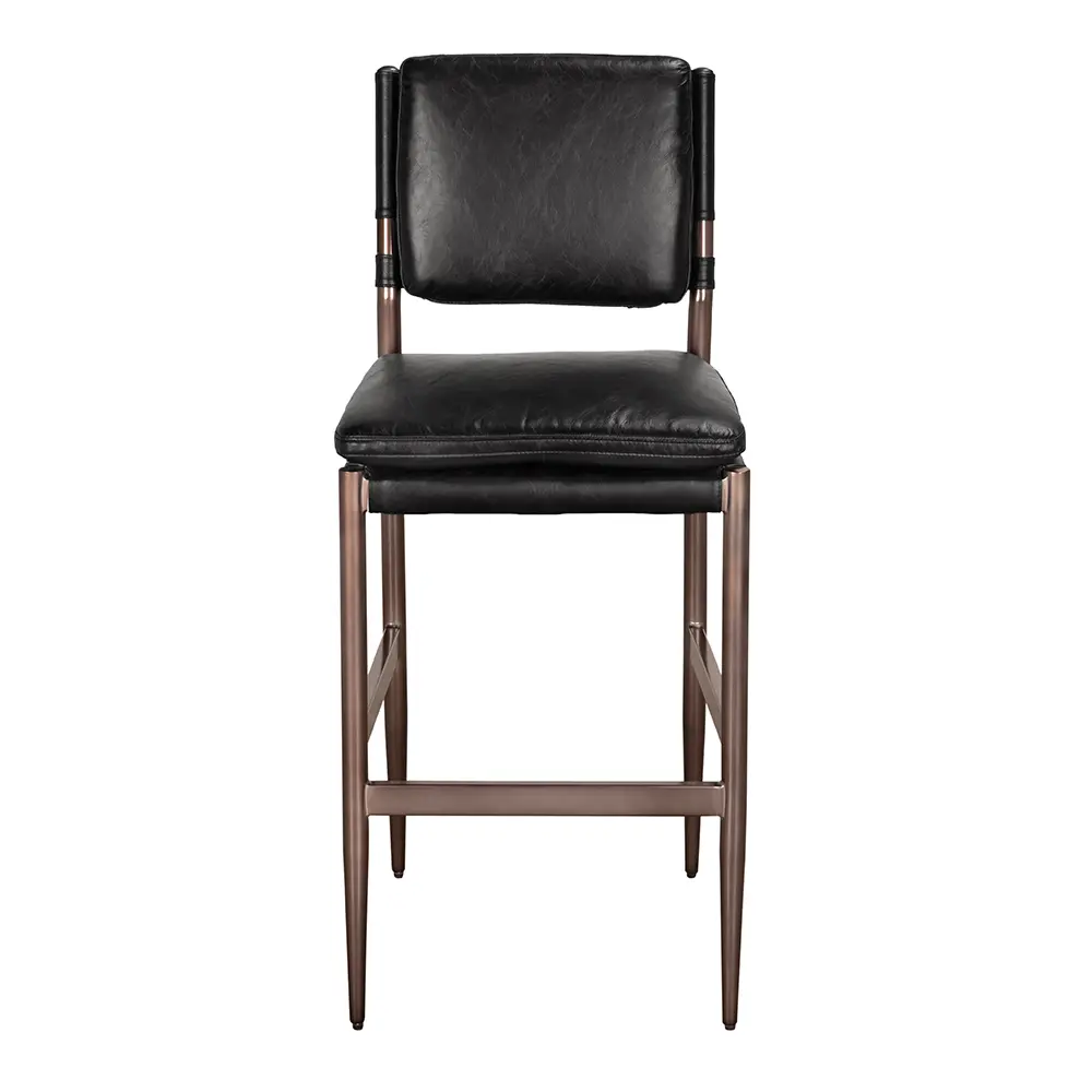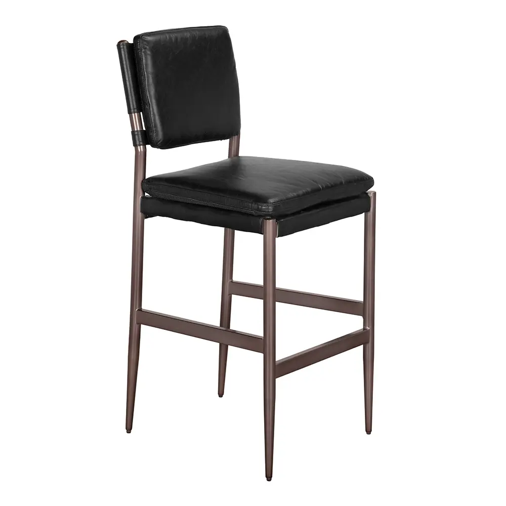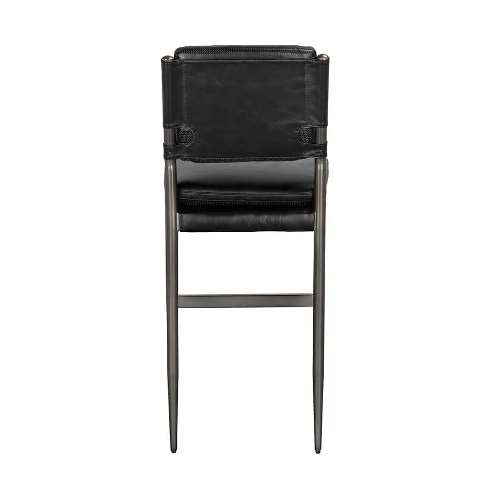 Wooster Bar Chair, Ebony Black Leather