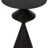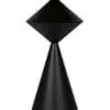 The Zasa Side Table features a conical Matte Black base that supports a circular top. Its geometric and sculptural form provides a minimalist, industrial accent while offering both functional surface and visual interest.
