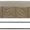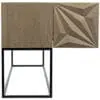 This four-door, two-compartment cabinet in Bleached Walnut features bold, faceted front panels carved in a striking geometric starburst design. Elevated on a minimal black metal frame, it blends sculptural detail with modern sophistication and functionality.